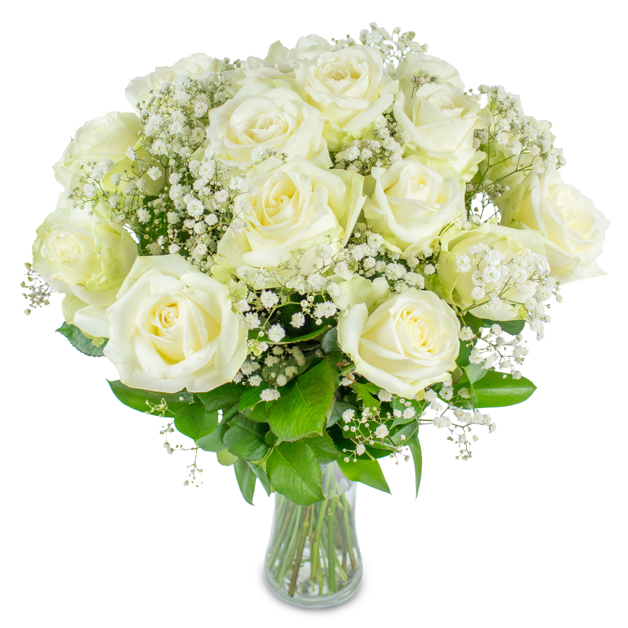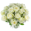 Celebrate every moment with our exquisite white roses, carefully selected to ensure maximum freshness. This distinctive bouquet pairs elegant white roses with soft gypsophila and lush aspidistra leaves, crafting a beautiful and unique floral display.