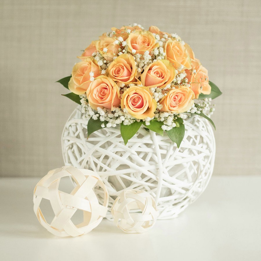 Elegant Orange Roses & Gypsophila Wedding Arrangement